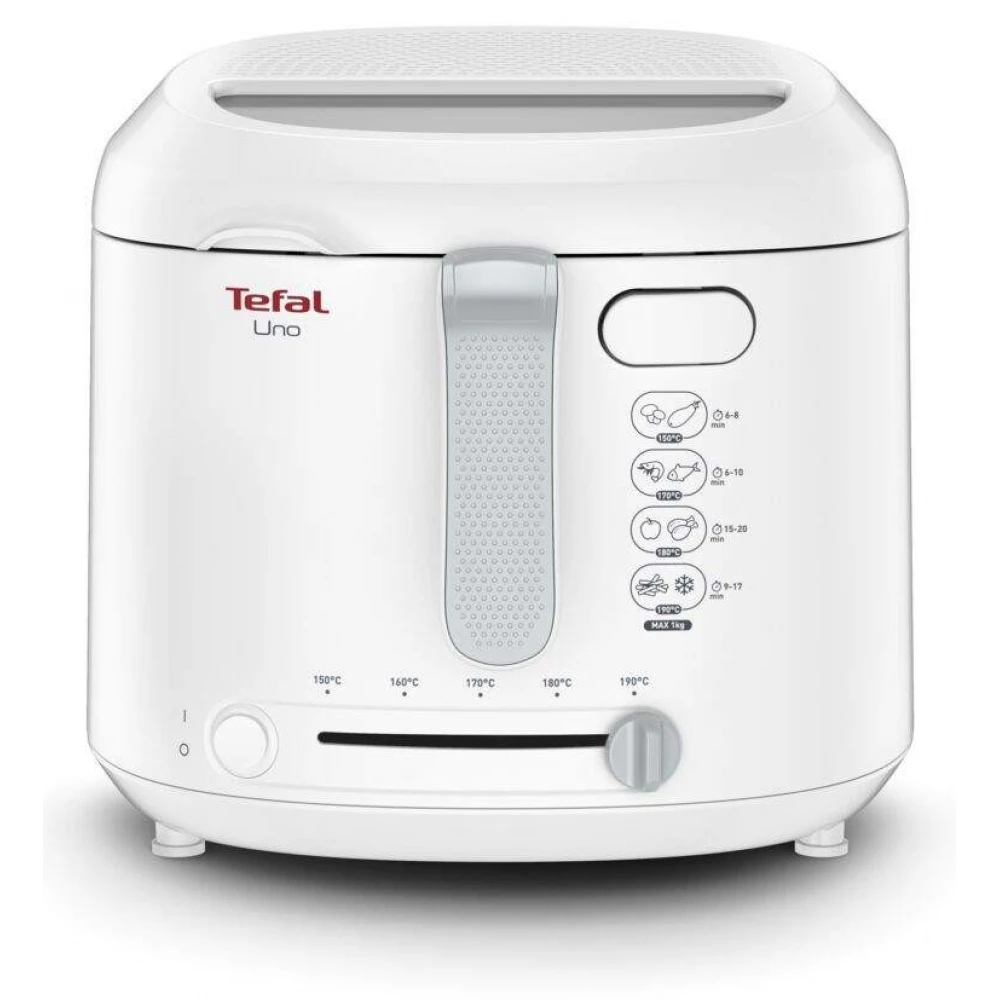 Takarítson meg helyet a konyhában és főzzön az egész családnak! A Tefal Uno kompakt elektromos fritőz, amely elegendő nagyságú fritőz az egész családnak történő főzéshez! A bő, 1 kg-os kapacitás négy személy részére történő főzéshez megfelelő, míg kompakt mérete és a behajtható fogantyúja helyet takarít meg a konyhapulton és a konyhaszekrényben - bármely konyhában ideálisan tárolható. Az Uno fritőz kényelmi funkciókkal felszerelt, beleértve a főzés egyszerű felügyeletére szolgáló nagy betekintőnyílást, az automatikus fedélnyitást és a beállítható termosztátot (150 °C - 190 °C közötti hőmérséklet tartományban) is, amely nagy rugalmasságot biztosít minden fajta kiváló sült étel elkészítésénél.