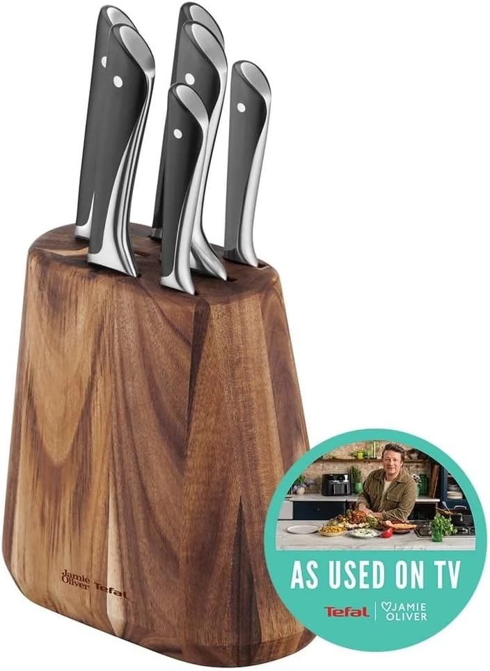 TEFAL K267S656 Jamie Oliver Kés készlet akác tartóban 7db Inox/Fa