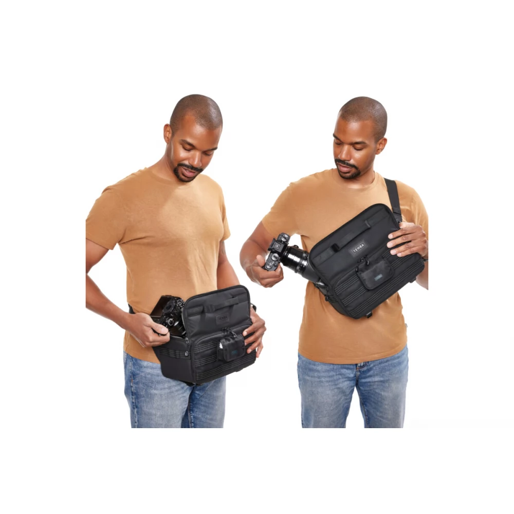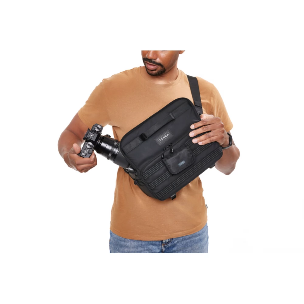 A Tenbas taktikai Axis táskákat a több mint 40 éves történelmünk során a hadsereg számára készített, rendkívül tartós táskák ihlették. A 6L sling táskába egy tükör nélküli vagy DSLR fényképezőgép 2-3 objektívvel (70-200mm 2.8-ig), vagy egy DJI Mavic drónkészlet is elfér. A táska azonnal átalakítható hordozótáskából deréktáskává. A MOLLE hevederek lehetővé teszik a bővíthetőséget a Tenba Tools akkumulátor- és memóriakártya-tárcákkal, valamint a katonai szabvány szerinti tokok és kiegészítők sokaságával. A puha, testhez simuló memóriahab a hevederben egész napos hordozási kényelmet biztosít. Az alján található pántokon egy állvány vagy monopod is elfér, és a többi Axis v2 táskához hasonlóan itt is van egy rejtett zseb, amely kompatibilis egy Apple AirTag vagy Tile Bluetooth Tracker készülékkel.