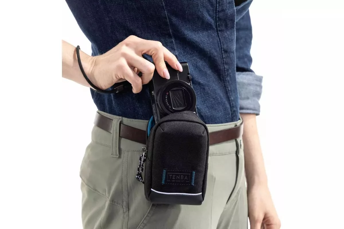 A fekete Skyline V2 Pouch 3 a Tenbától nagy szenzoros kompakt fényképezőgépek, mint például a Sony RX-100 sorozat vagy a Canon PowerShot G7 X Mark III védelmére lett tervezve szállítás és tárolás közben.