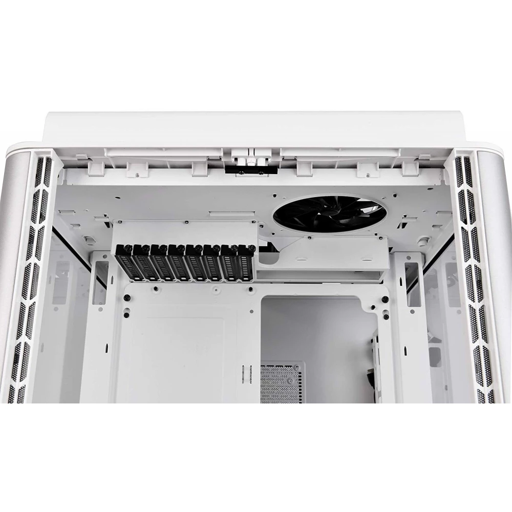 Az előlapon is látható nagy helyek száma pl. optikai meghajtóknak vagy ventilátor szabályozóknak.