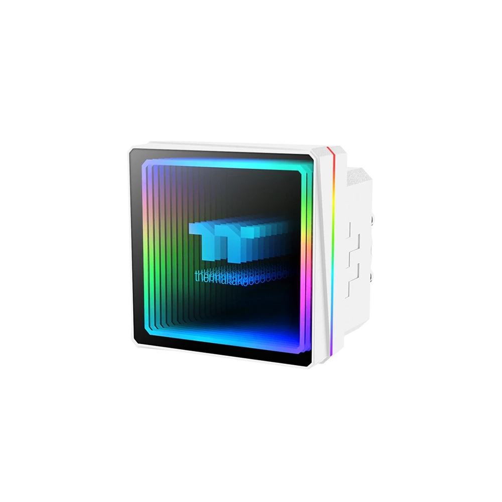 Kompakt, univerzális vízhűtés 3 darab 120mm-es vezérelhető ARGB világítású és PWM sebesség szabályzású ventilátorral, 360mm-es radiátorral és egy négyzet alakú, szintén vezérelhető ARGB világítású vízhűtés blokkal. A hűtés különlegessége a végtelen tükör fényhatású CPU hűtőblokk fedél, mely levehető és elforgatható így az a ház orientációjához igazítható.