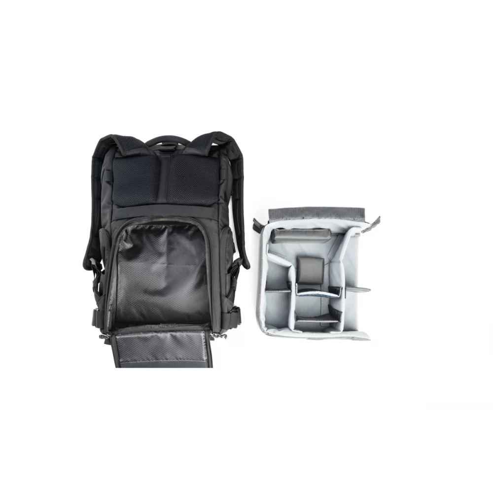 A táska kivehető, párnázott elválasztókkal ellátott betétjében kényelmesen elfér egy fényképezőgép 2–3 objektívvel, de a betét eltávolításával extra helyet nyerhetsz. A felső, oldalsó vagy hátsó nyíláson keresztül gyorsan hozzáférsz a felszereléshez. Az oldalzsebek bővíthetők, így elfér bennük egy kulacs, állvány vagy esernyő. A vállpántokon található hurkokhoz karabinereket vagy kamera klipet rögzíthetsz. A dedikált, párnázott rekeszek 14"-es MacBook Prót és 12"-es tabletet is biztonságosan védenek. Ez a sokoldalú hátizsák ideális mindennapi használatra, városi közlekedéshez vagy hétvégi kirándulásokhoz.