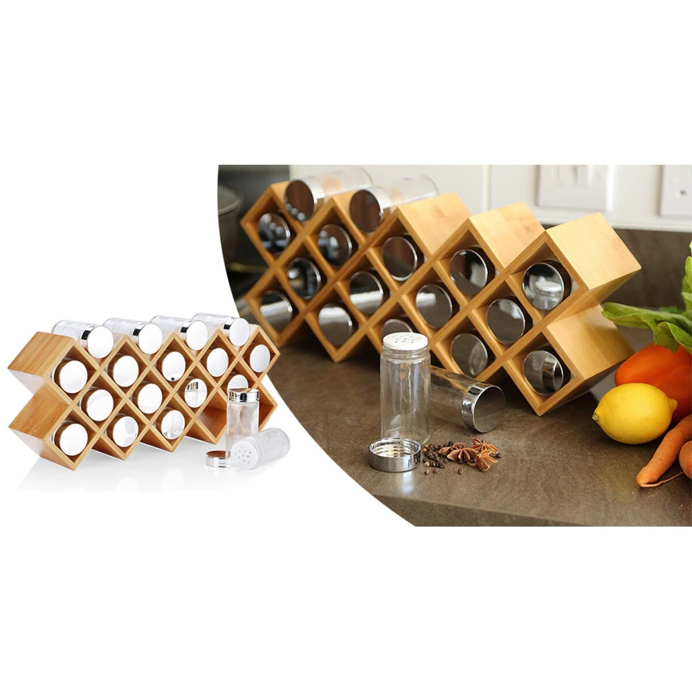 - 1 db bambusz fűszertartó állvány 18 db fűszertartó üveggel