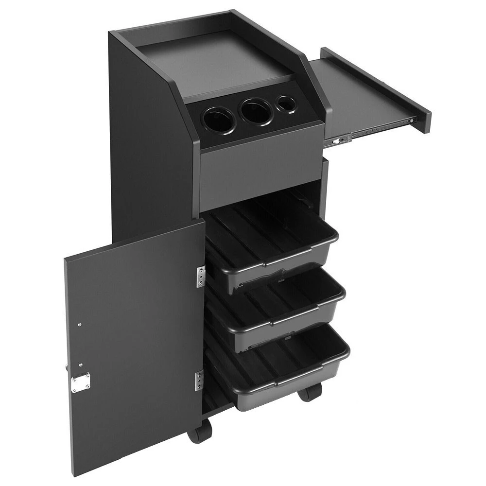 A Timeless Beauty márkájú professzionális eszközkocsi tökéletes választás kozmetikusok, fodrászok és szépségápolási szakemberek számára. Elegáns fekete színű kivitelben készült, amely bármilyen szalonkörnyezetbe illeszkedik.