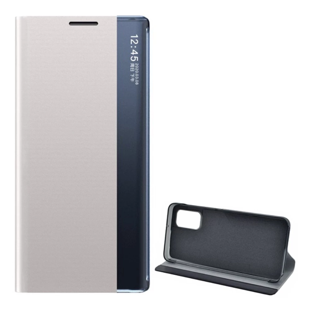 Tok álló. textil hatású (aktív FLIP. oldalra nyíló. asztali tartó. Smart View Cover) EZÜST