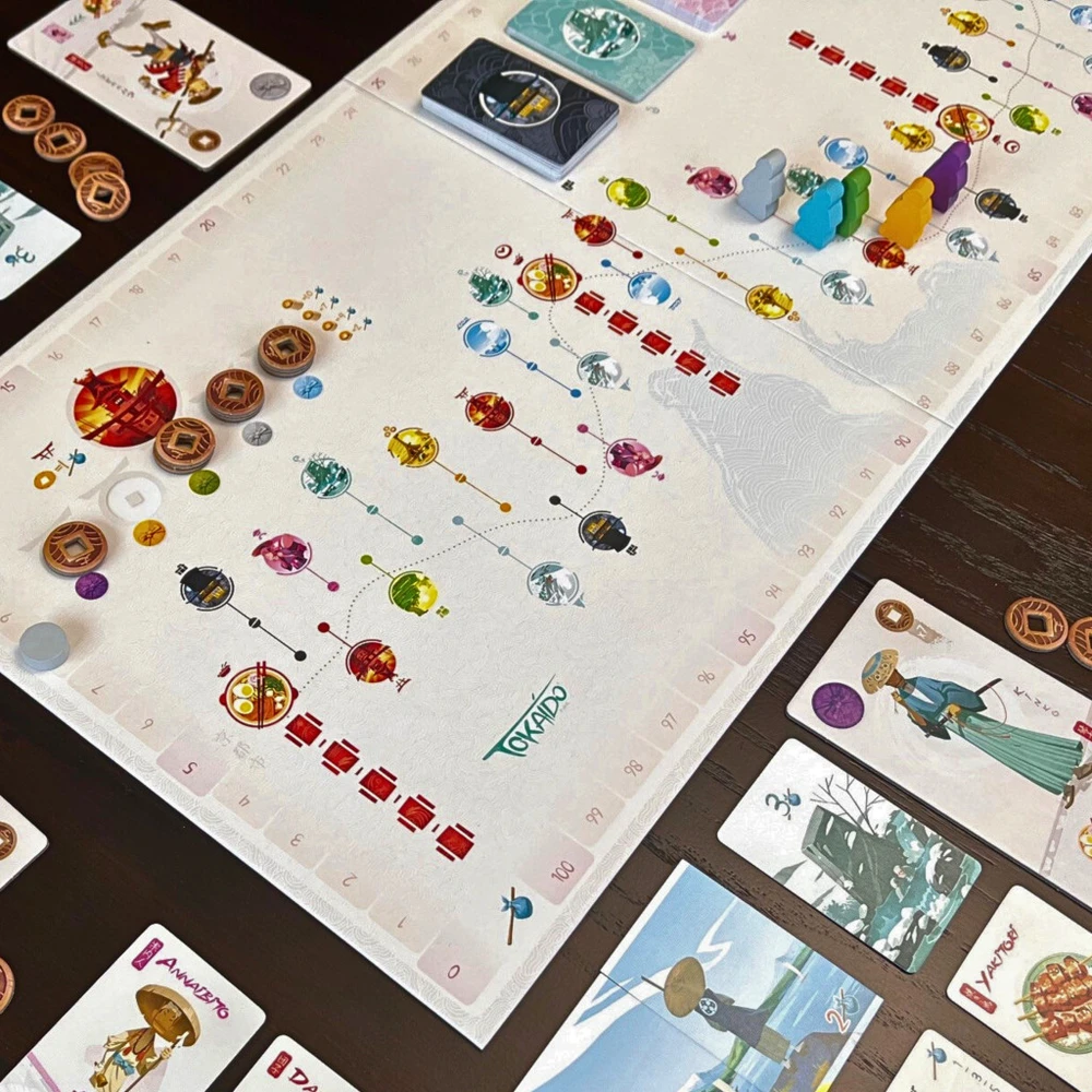 Üdvözlünk a Tokaidón – egy varázslatos keleti utazásban, amely Kiotótól Edóig vezet! Ez a hangulatos társasjáték Japán legendás tengerparti útvonalán kalauzolja a játékosokat, miközben különleges élményeket gyűjtenek.
