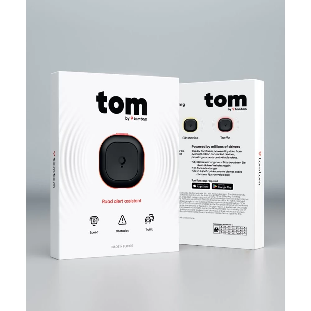 A Tom by TomTom egy intelligens, kifejezetten sofőrök számára tervezett asszisztens, amely figyelmeztet az úton felmerülő veszélyekre és a forgalmi változásokra. Hang- és fényjelzésekkel hívja fel a figyelmet a sebességmérő kamerákra, forgalmi akadályokra, balesetekre és hirtelen lassulásokra, így a vezető mindig időben reagálhat. A Tom segít, hogy a figyelem az úton maradjon, miközben a biztonságot növeli és a vezetést nyugodtabbá teszi.