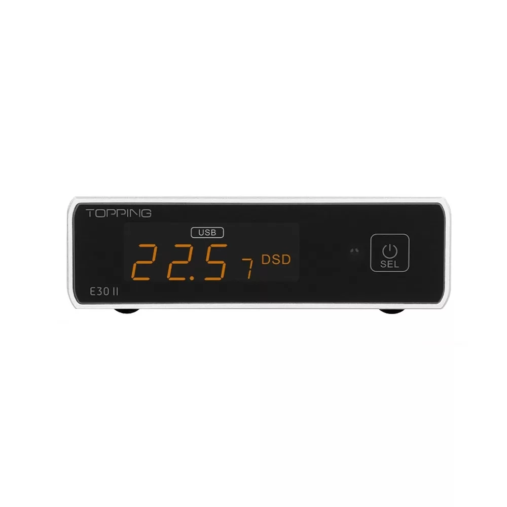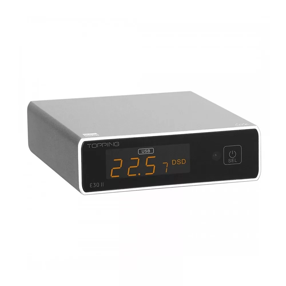 A második generációs Topping E30 II asztali D/A (digitális-analóg) konverter Lite változata, mely egy AK4493S chipet tartalmaz. Optimalizált áramköreinek és továbbfejlesztett belső tápegységének köszönhetően az elődjéhez hasonló 768kHz PCM és DSD512 natív felbontást nyújt, de alacsonyabb zajszinttel és még jobb hangminőséggel, távirányítóval és Hi-Res Audio minősítéssel.