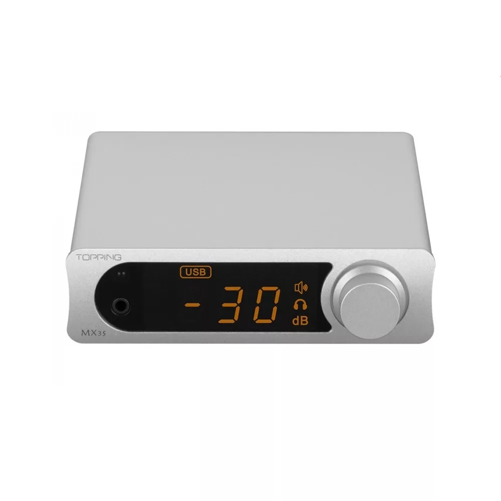A Topping MX3s asztali D/A (digitális-analóg) konverter és sztereó erősítő és fejhallgató erősítő egy igazi svájci bicska, amely tökéletes társ lehet egy 2.1-es rendszer kialakításában. AK4377 DAC chippel, 2x50W teljesítménnyel, Bluetooth 5 kapcsolattal, aptX HD és aptX Adaptive támogatással, digitális és RCA bemenetekkel, mélysugárzó kimenettel, távvezérlővel.
