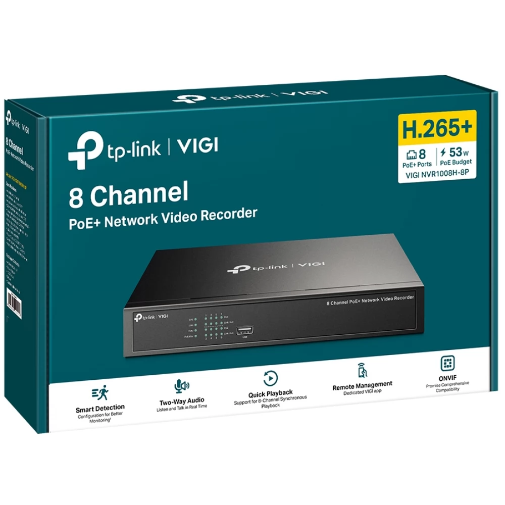 Összefoglalva, a TP-LINK VIGI NVR1008H-8P 8 csatornás PoE+ videórögzítő minden olyan funkciót és lehetőséget kínál, ami egy hatékony megfigyelőrendszerhez szükséges. A PoE+ energiaellátás, a H.265+ videótömörítés és az ONVIF protokoll kompatibilitás mind hozzájárulnak a rendszer rugalmasságához és hatékonyságához, és a kétfaktoros hitelesítés gondoskodik az adatok biztonságáról.