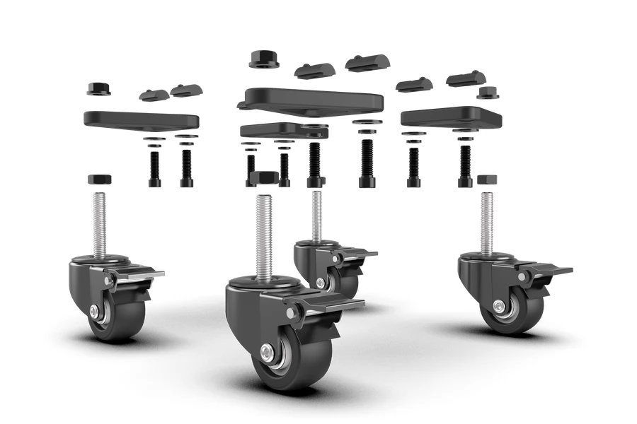 Fokozza SimRacing alvázának mobilitását görgős kerekeinkkel, amelyeket közvetlenül a szerelék alapprofilja alá szereltek fel. Ez a kiegészítés lehetővé teszi, hogy szükség szerint könnyedén mozgassa a beállításokat. Minden görgő megbízható fékrendszerrel van felszerelve, amely biztosítja, hogy a szerelék biztonságosan a helyén maradjon a versenyzés során. A súly megtartására készült görgők elég erősek egy teljesen megrakott Trak Racer TR160-hoz, sofőrrel, kutyájával és egy sörtartóval.