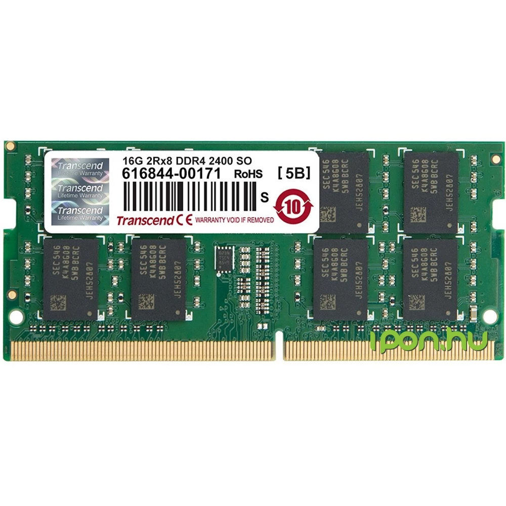1 darab TRANSCEND, összesen 16GB Notebook DDR4 (SO-DIMM) 2133Mhz memória CL15 késleltetéssel.