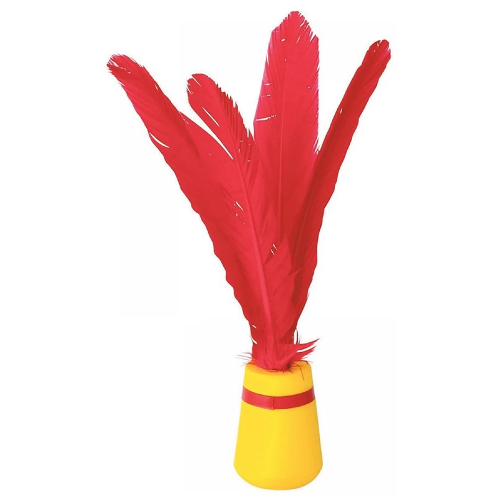 Szivacs talpazatból és 4 darab kb. 17 cm-es tollból álló lábtoll labda kezdő játékosok részére.