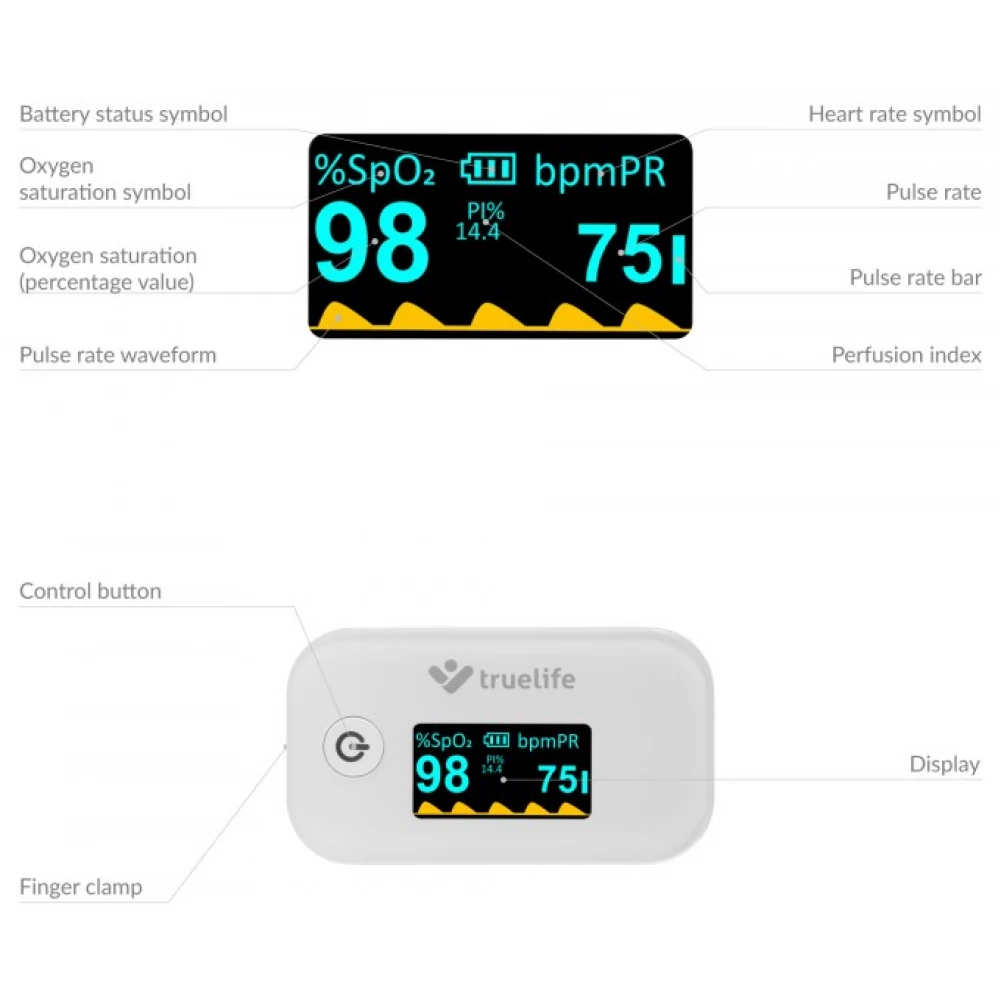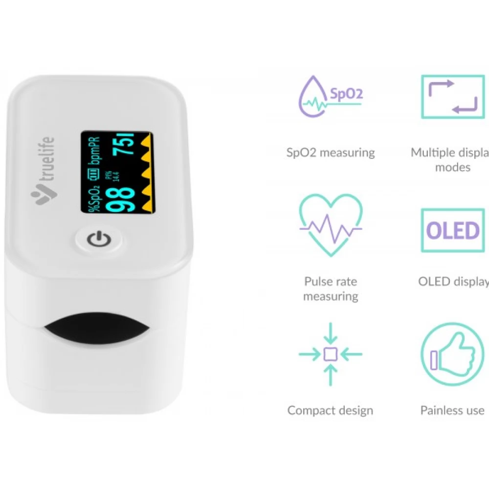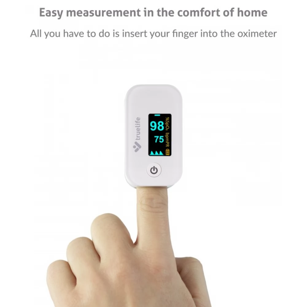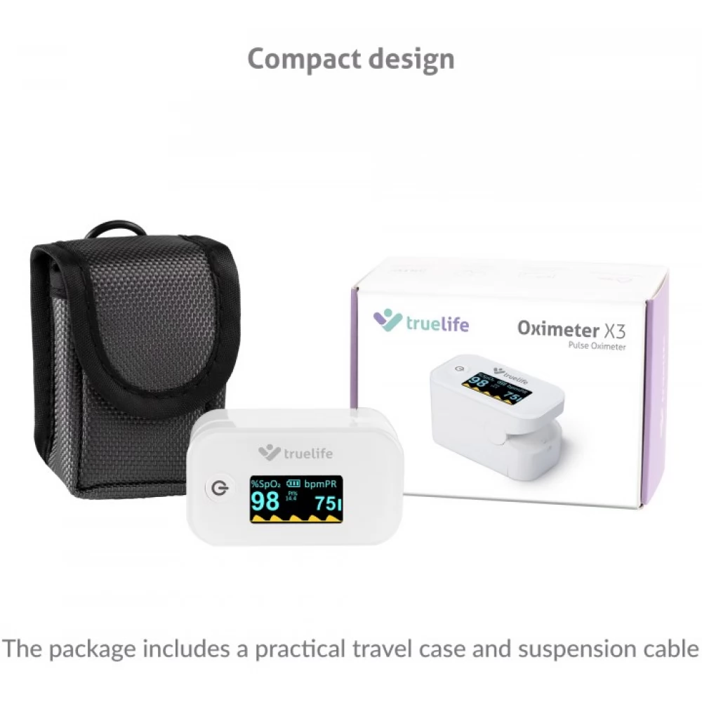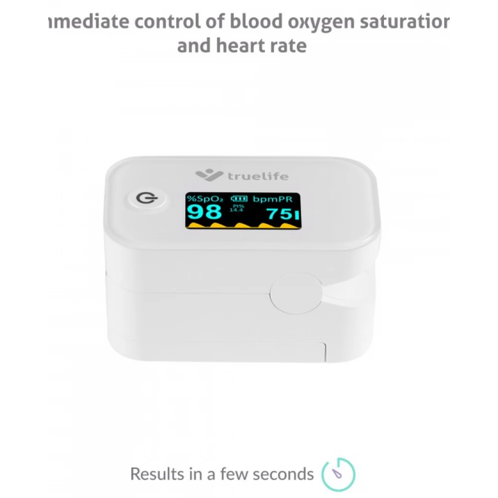 A TrueLife X3 oximéter azonnal és pontosan méri meg a vér oxigéntelítettségét és a pulzusszámot. A mért értékek azonnal és jól átláthatóan megjelennek a beépített kijelzőn. Különösen alkalmas légzőszervi vagy szívbetegségben szenvedők, vagy akár élsportolók számára is. Ugyanakkor minden otthon elsősegély készletében jól jön.