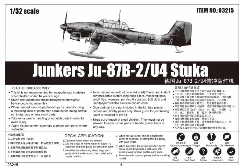 TRUMPETER 1/32 Ju-87B-2/U4 Stuka bombázó modell