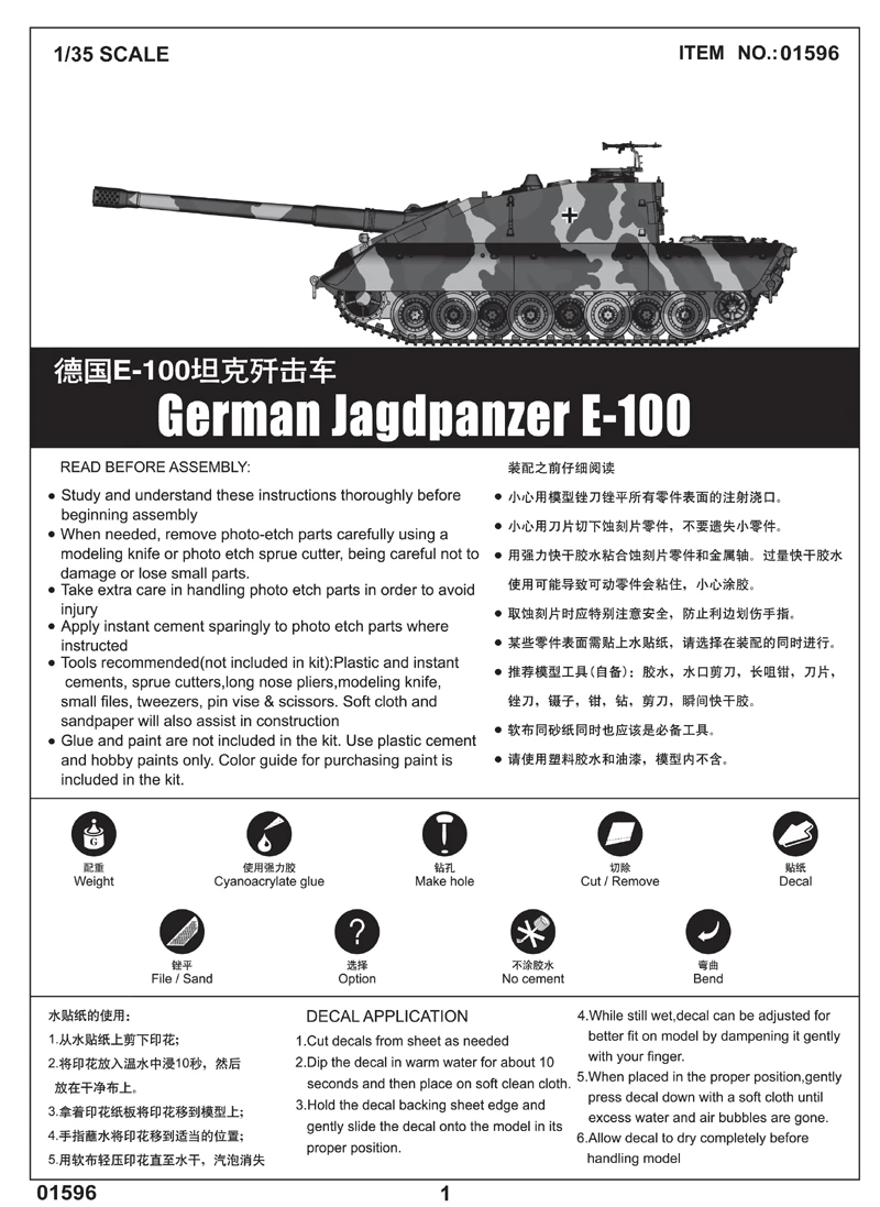 TRUMPETER 1/35 StuG E-100 nehéztank modell
