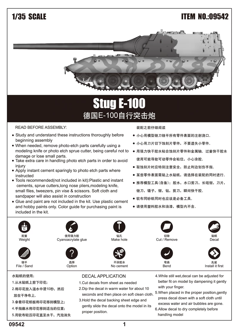 TRUMPETER 1/35 Stug E-100 tank modell