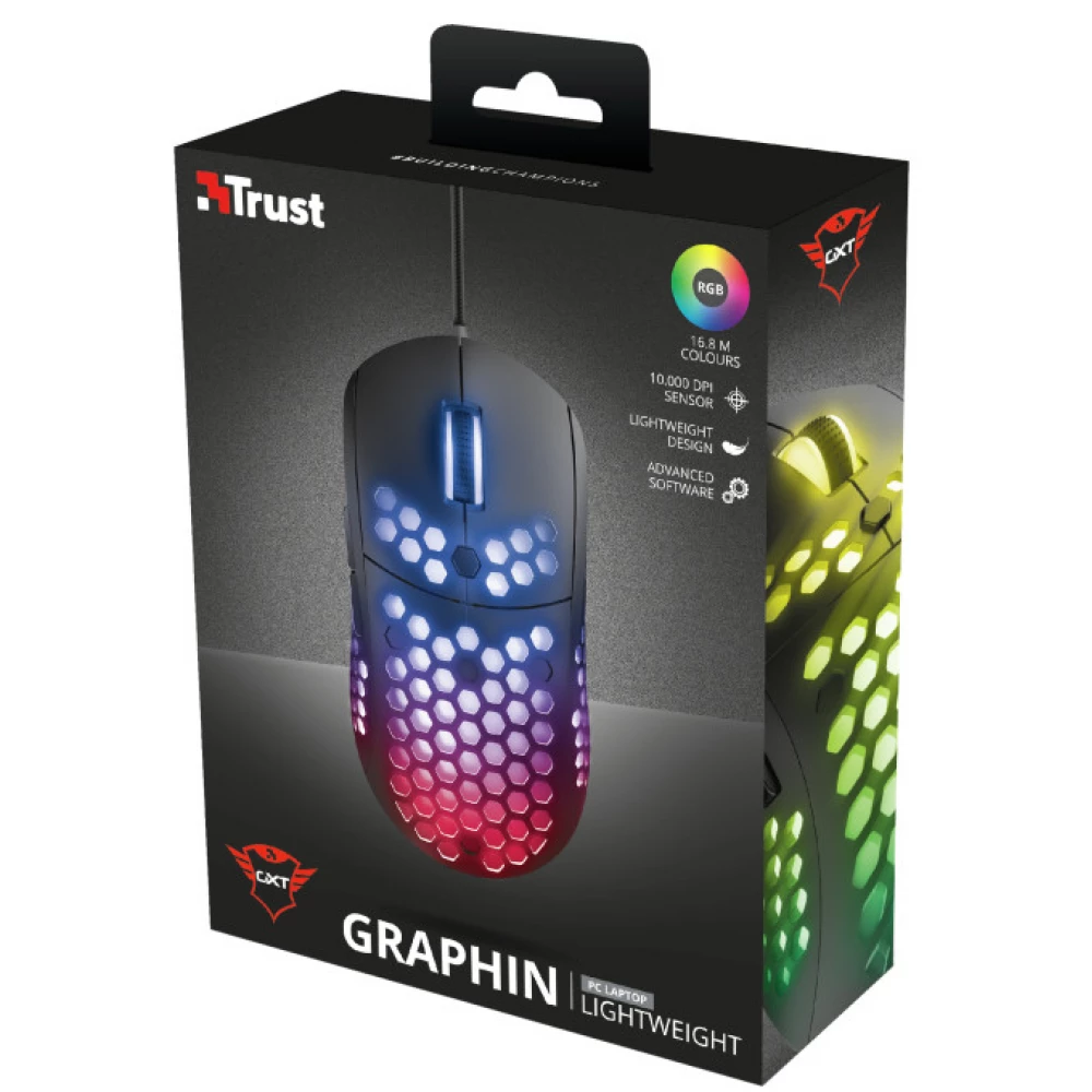 A Trust GXT 960 Graphin egy könnyű gamer egér, amely a professzionális játékosok igényeire lett tervezve. Könnyű konstrukciója lehetővé teszi a gyors és precíz mozdulatokat még hosszú játékmenetekben is, minimalizálva a kéz fáradását.
