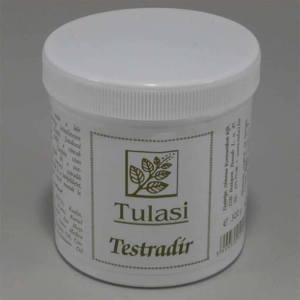 A Tulasi testradír kizárólag természetes anyagokat tartalmazó, tartósítószermentes készítmény. Többfunkciós termék, testradírozásra és cellulitisz, narancsbor kezelésére egyaránt alkalmas. A termékkel állatkísérleteket nem végeztek!A Tulasi testradír kizárólag természetes anyagokat tartalmazó, tartósítószermentes készítmény. Többfunkciós termék, testradírozásra és cellulitisz, narancsbor kezelésére egyaránt alkalmas. A termékkel állatkísérleteket nem végeztek!