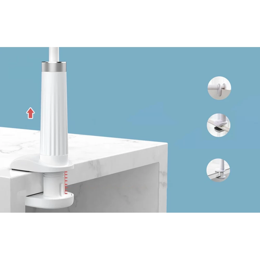 A szilikon csúszásgátló párnákkal ellátott tartós klip biztonságosan rögzíthető akár 8 cm vastag polcra vagy asztalra. Ez a praktikus megoldás óriási szabadságot ad. Könnyedén felszerelheti a tartót, ahol szüksége van rá, és élvezze azt a kényelmet, amelyről álmodott.
