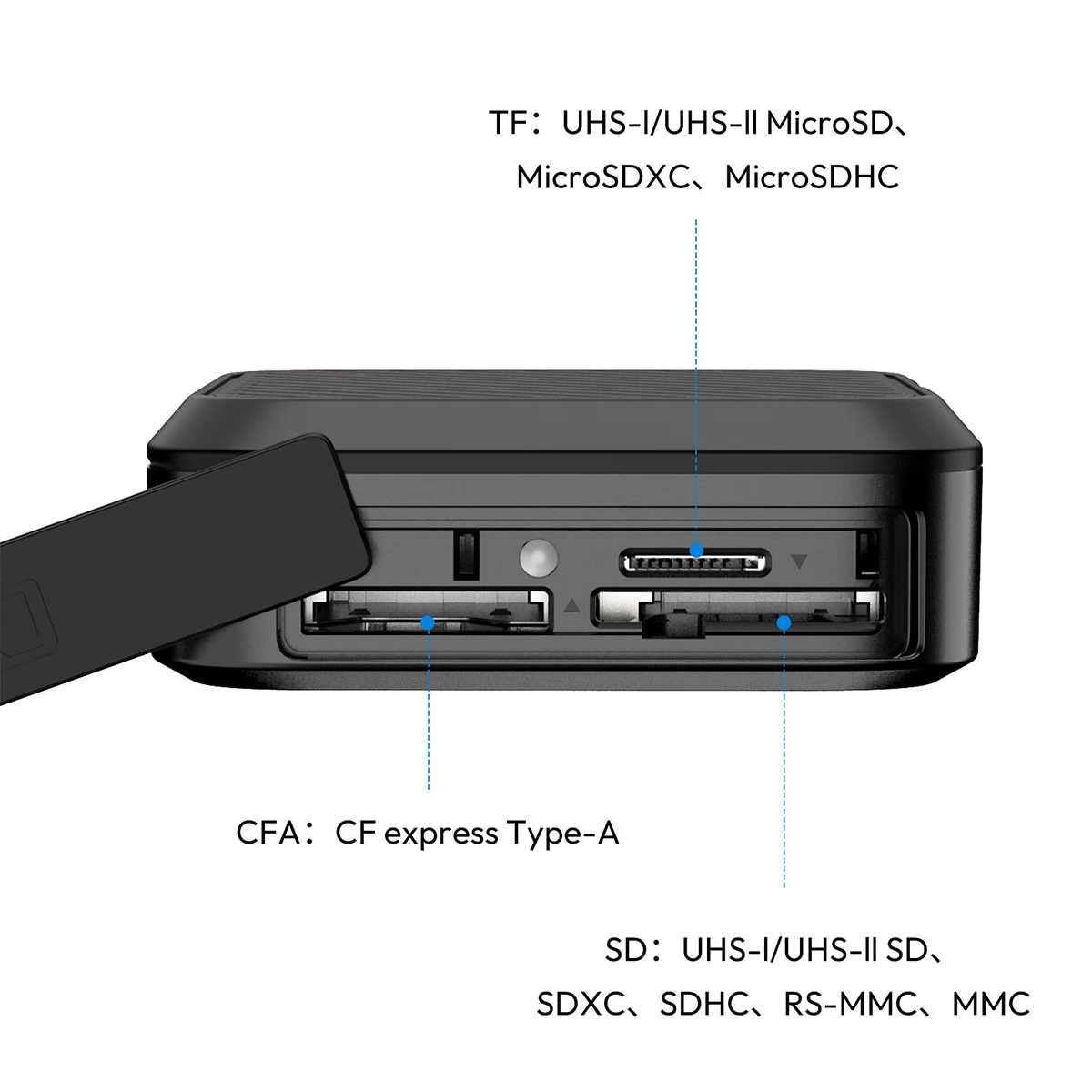 - 3 az 1-ben kártyaolvasó: CFexpress Type A, SD és microSD