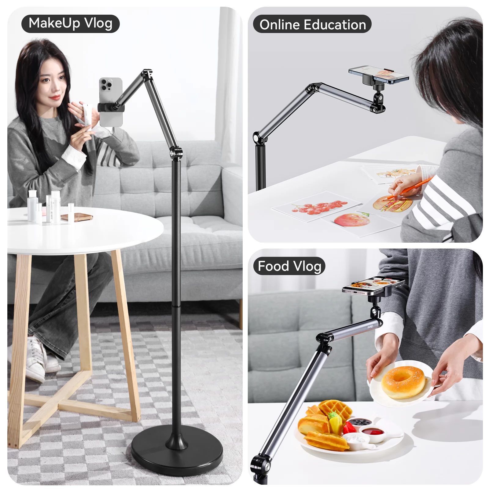 - Könnyedén állítható a kívánt pozícióba fotózáshoz, videózáshoz vagy élő közvetítéshez