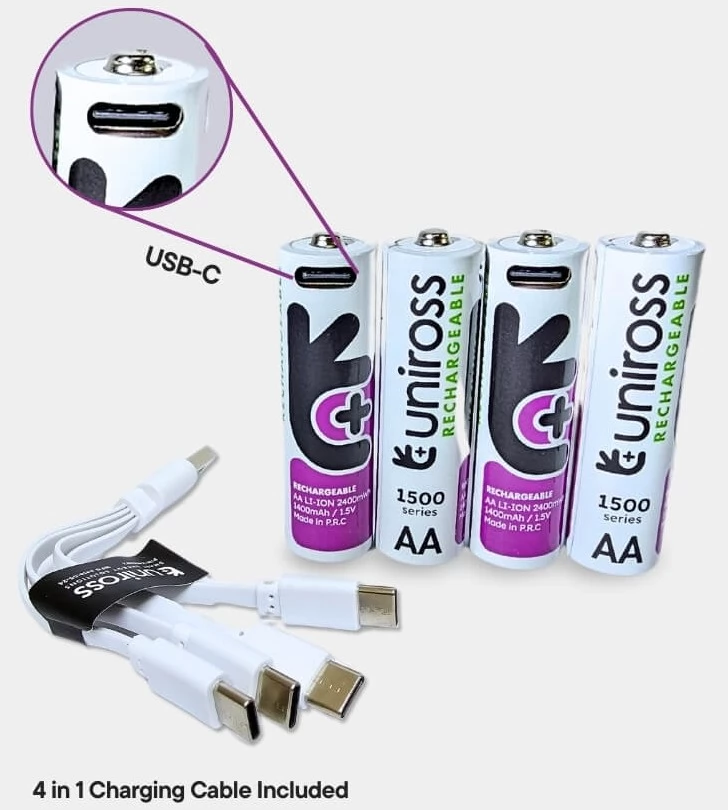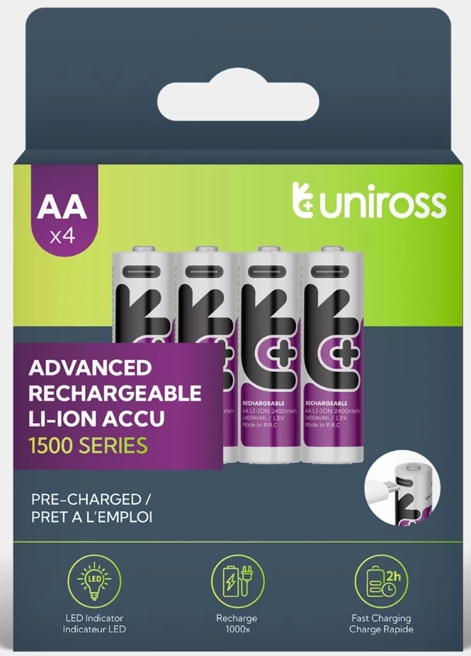 UNIROSS Rechargeable ceruza akkumulátor (AA) 1500mAh USB-C 1.5V li-ion 4 db