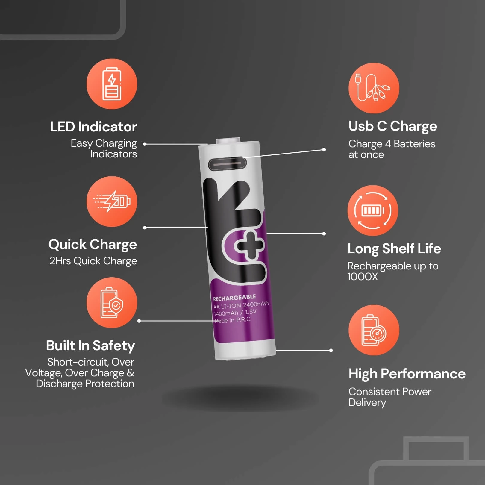 USB Type C kábellel tölthető 1500mAh 1.5V ceruza akkumulátor.