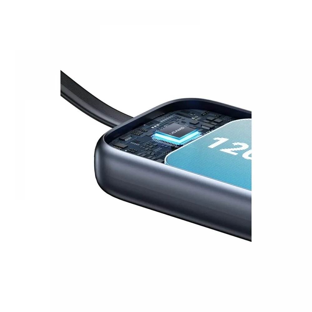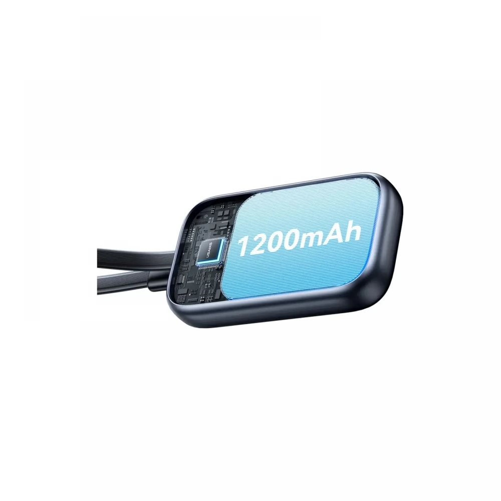 USAMS vésztöltő 1200mAh, LED jelzés + fix Type-C kábel, FEKETE