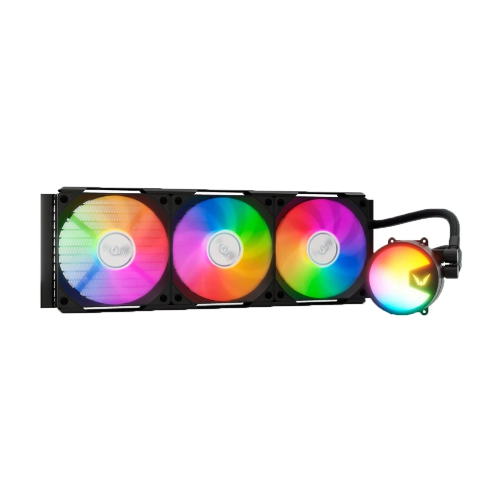 Kompakt univerzális vízhűtés 3 darab 120mm-es vezérelhető ARGB világítású és PWM sebesség szabályzású ventilátorral, 360mm-es radiátorral és szintén vezérelhető ARGB világítású CPU vízhűtés blokkal aminek...