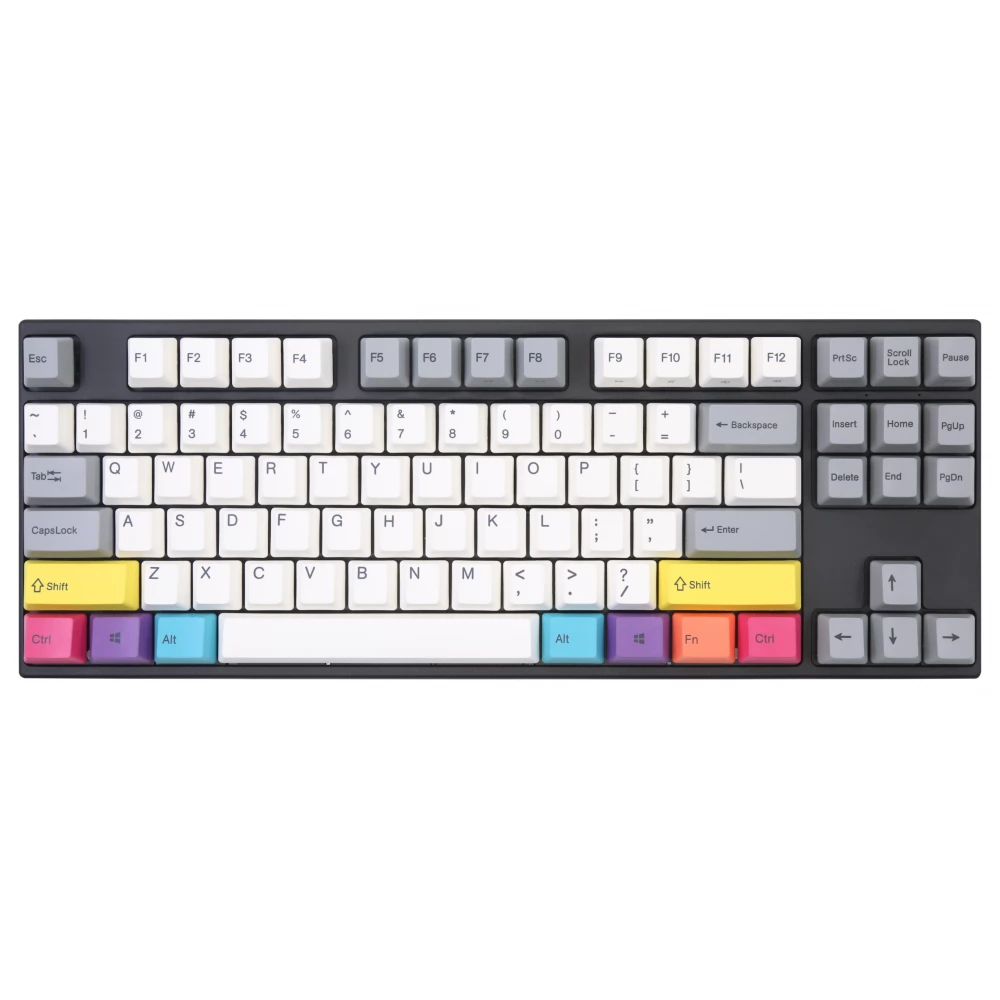 Varmilo második genrációs TKL billentyűzete fehér LED háttérvilágítással.