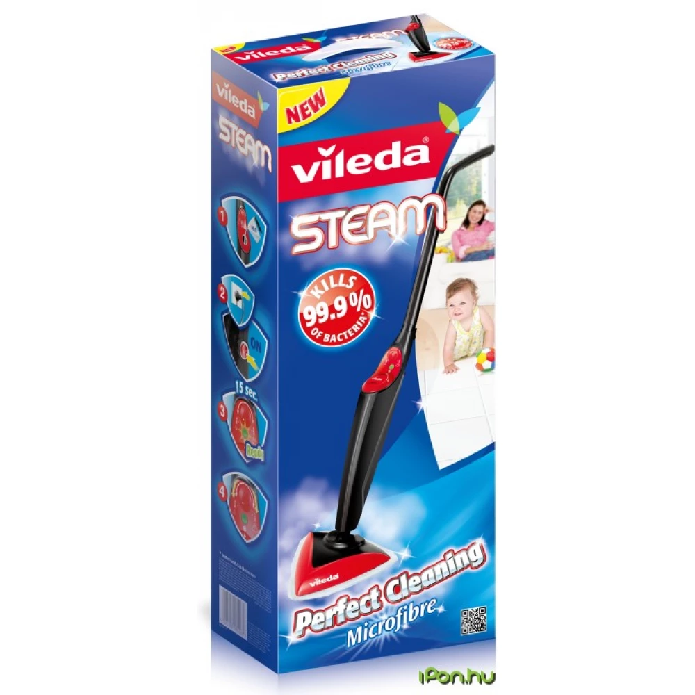 A Vileda Steam elhozza a higiénikus tisztaságot az otthonába! Vileda kifejlesztette a "Steam" gőztisztítót, az igazán higiénikus és alapos padlótisztításhoz. A Vileda Steam gőzfelmosó elpusztítja a baktériumok 99, 9% -át és mindemellett foltmentesen tisztít a kiváló minőségű mikroszálas felületével. Gyors és egyszerű módja annak, hogy higiénikusan tiszta legyen a padló. Elpusztítja a baktériumok 99, 9% -át a padlón anélkül, hogy szükség lenne tisztítószerekre. Könnyű kezelhetőség, innováció, és vonzó design.