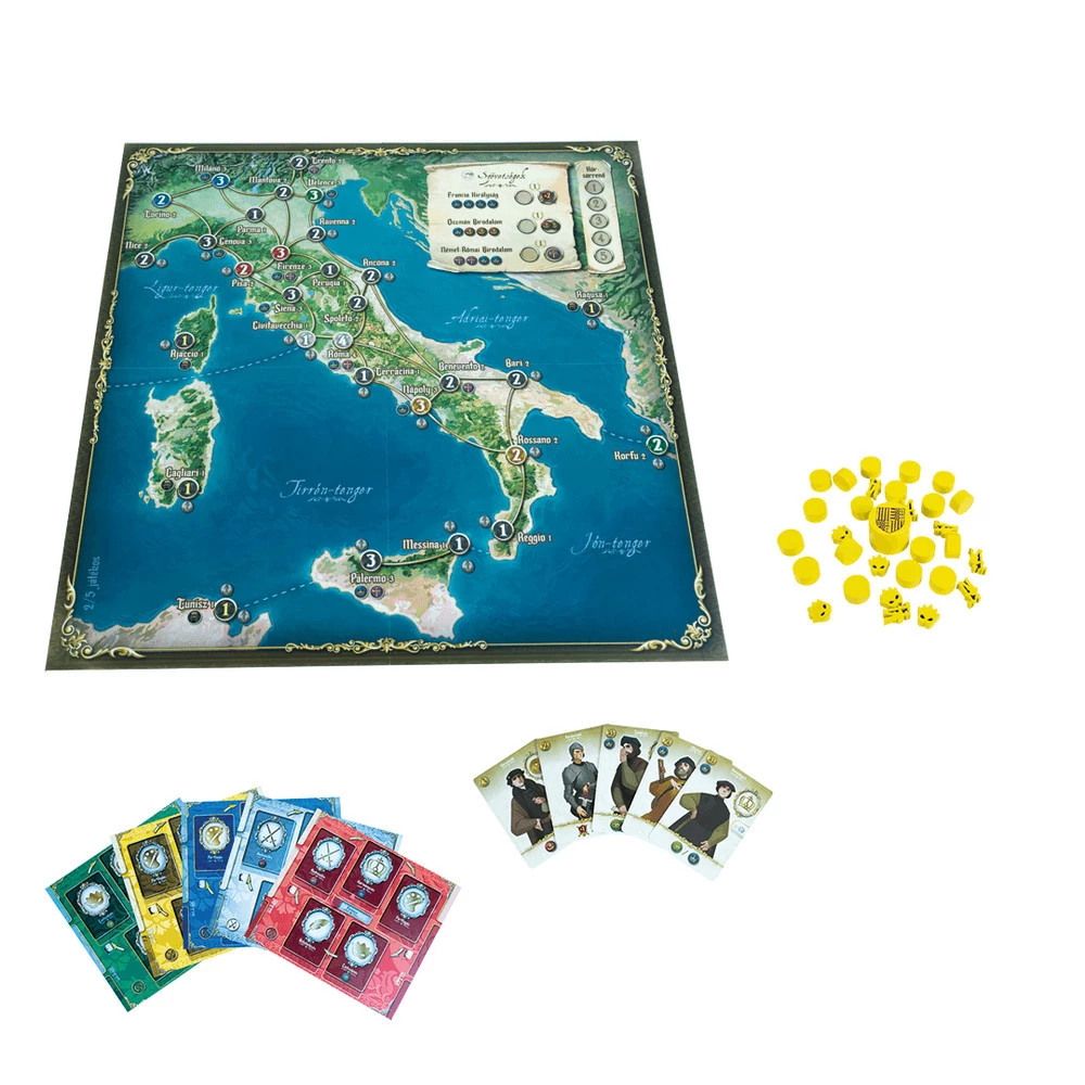 A játék célja: Minden játékos egy-egy olyan kiemelkedő dinasztiát képvisel, amely nagyban befolyásolta az itáliai reneszánszot: a nápolyi Aragónia, a milánói Sforza, a firenzei Medici, a velencei dózsék vagy a római Borgia.