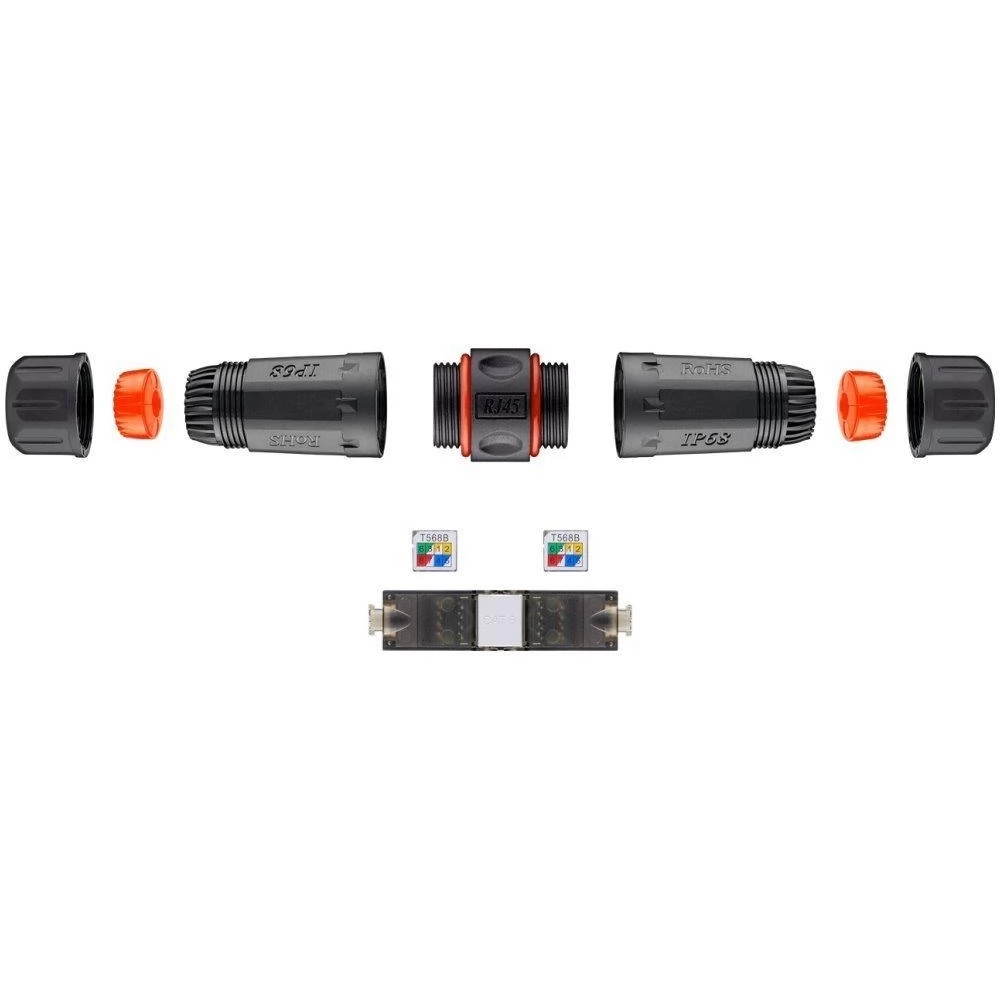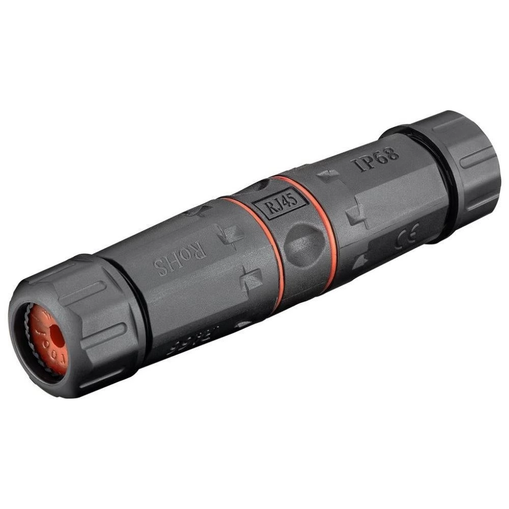 Árnyékolt, vízálló csatlakozó Cat5e/6/6a elosztáshoz. Véglezárt kábelek szegmenseinek meghosszabbítására tervezték. Alkalmas aktív kültéri elemek kültéri telepítéséhez, valamint könnyen összeszerelhető és szétszerelhető nehezen hozzáférhető helyeken.