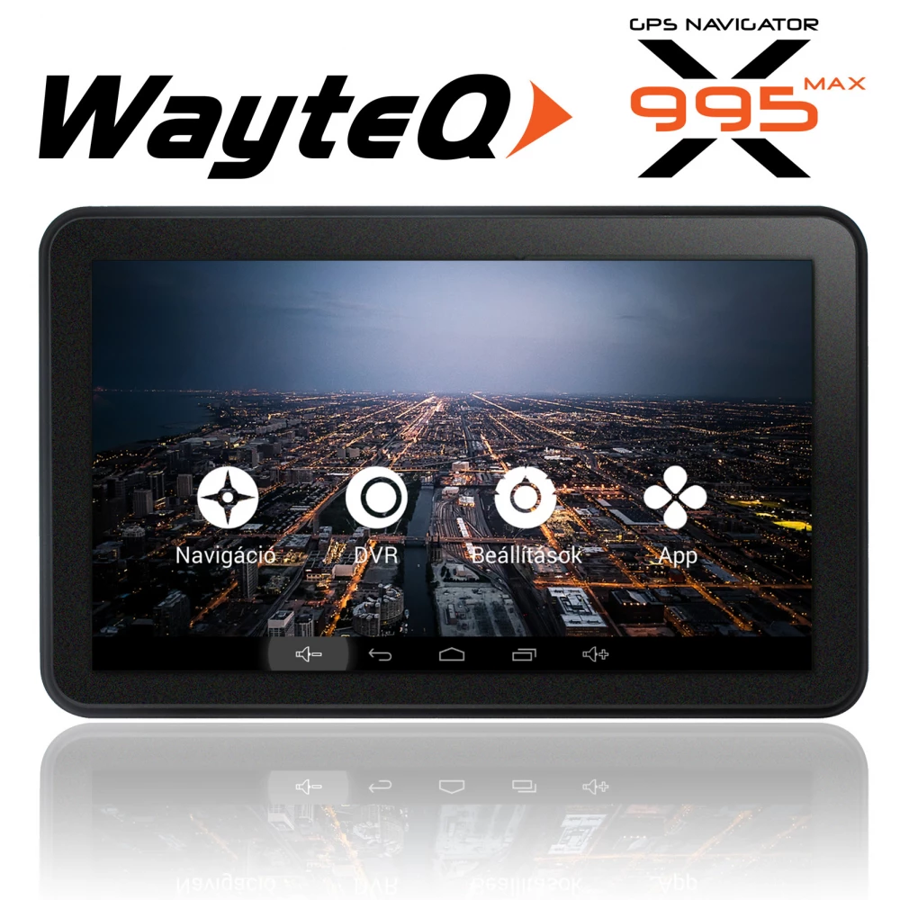 A WayteQ X995 Androidos navigációs készülék kaput nyit a navigáció új szintjére. Az Android platform és az erős hardver adta lehetőségeket kihasználva GPS készülékeknél eddig nem tapasztalt, új funkciókkal találkozhat: a többérintéses (MultiTouch), kapacitív, nagy fényerejű kijelző kiválóan alkalmas pl. a térképek széthúzással történő nagyítására, az előcsúszó menük kezelésére, különböző szövegbeviteli módok használatára.