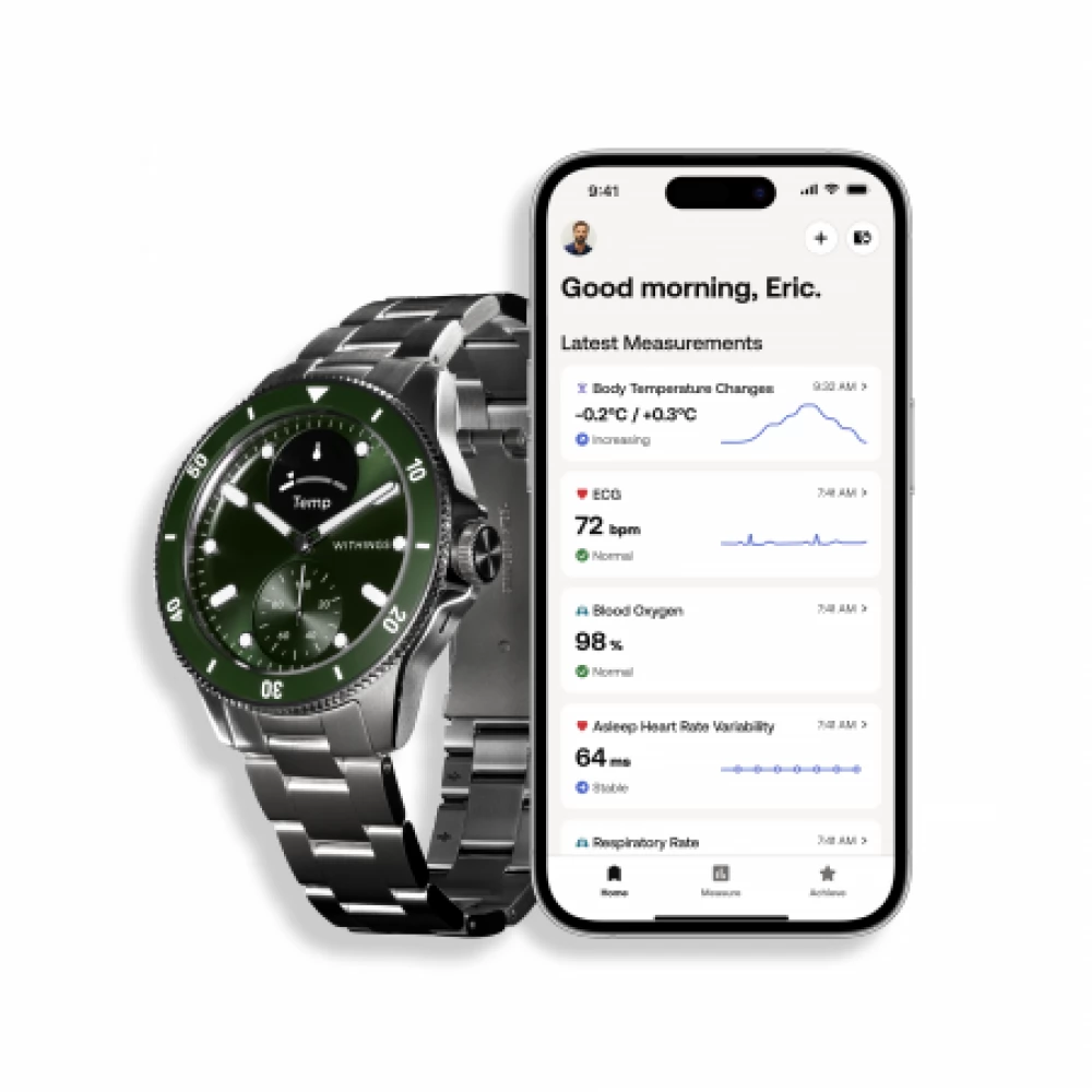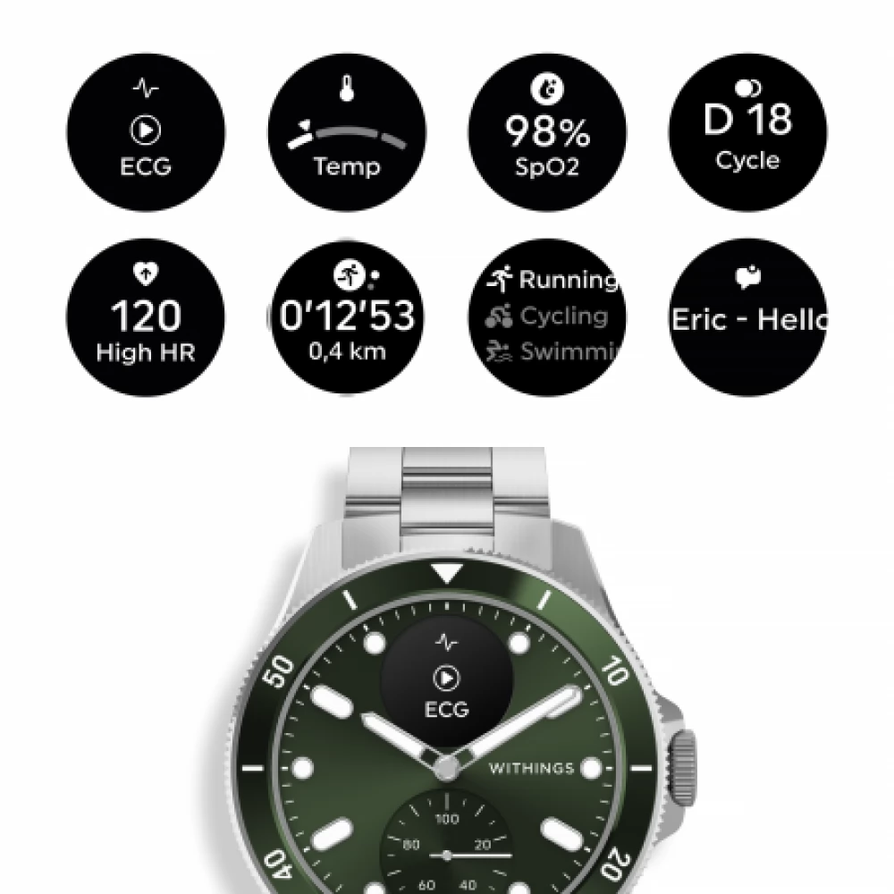 WITHINGS Scanwatch Nova 42mm rozsdamentes acél tok és szíj-zöld