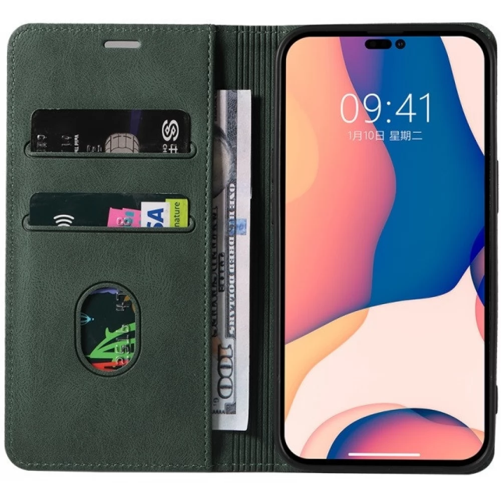 WOOZE Business Plus oldalra nyíló tok Oppo A74 4G / A95 4G / Reno6 Lite sötétzöld