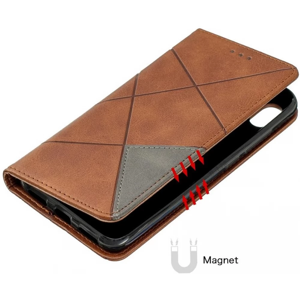 WOOZE DesignBook Oldalra nyíló tok geometria minta Huawei Honor 60 barna