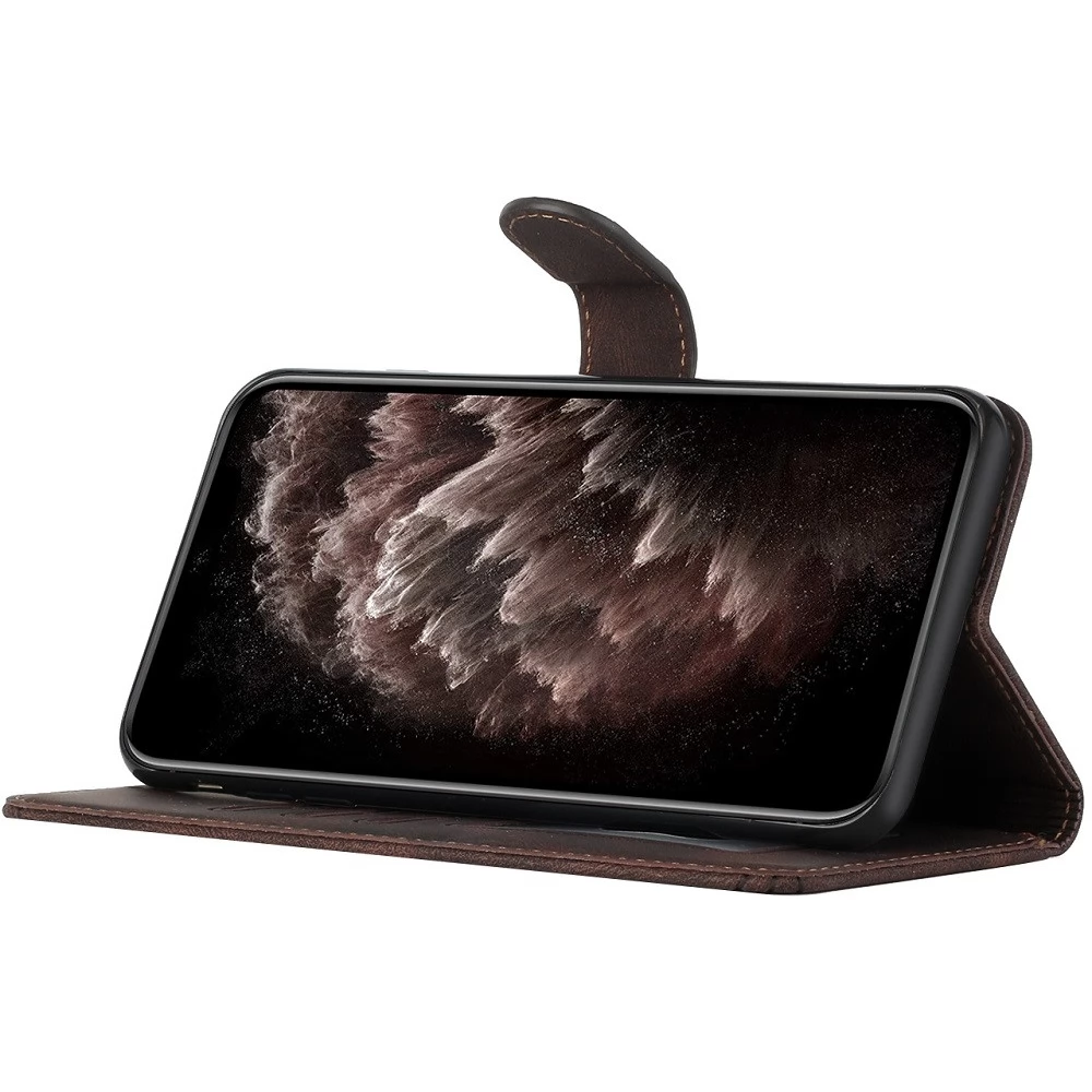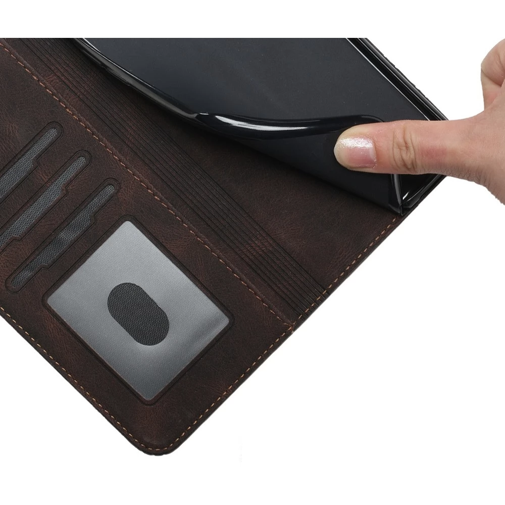 Ez a Wooze tok prémium minőségű PU puha bőrből és TPU belsővel készült, asztali és kártyatartó funkcióval.