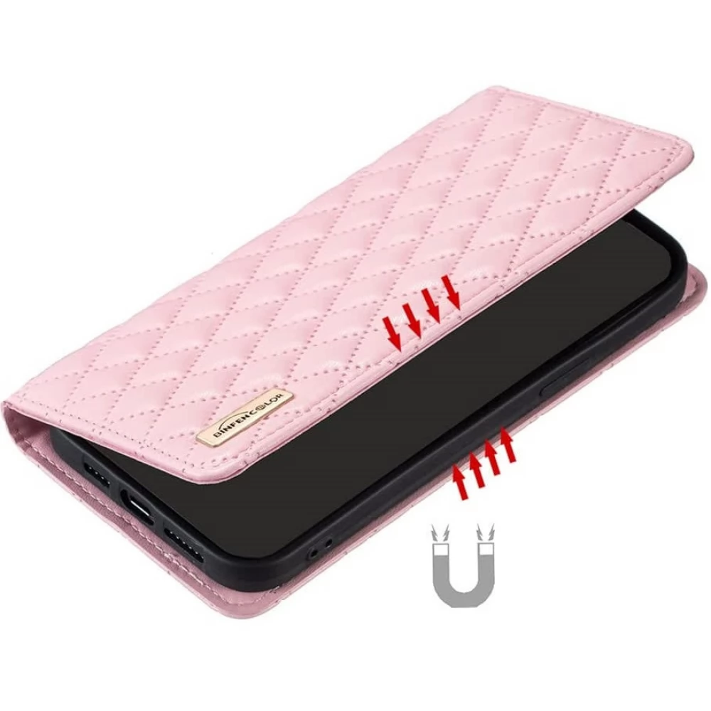 WOOZE Pillow oldalra nyíló tok stand kártyatartóval 3D rombusz minta Huawei Nova 11 Pro rózsaszín
