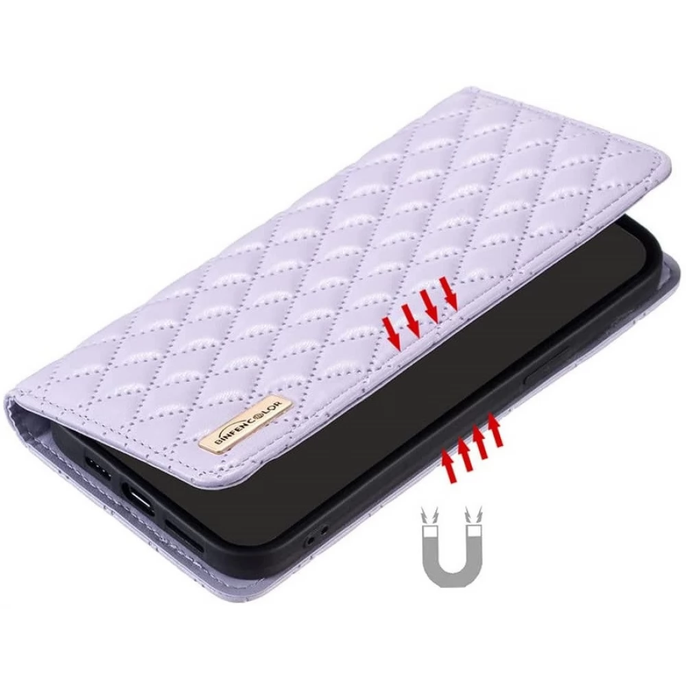 WOOZE Pillow oldalra nyíló tok stand kártyatartóval 3D rombusz minta Huawei Nova 11i lila