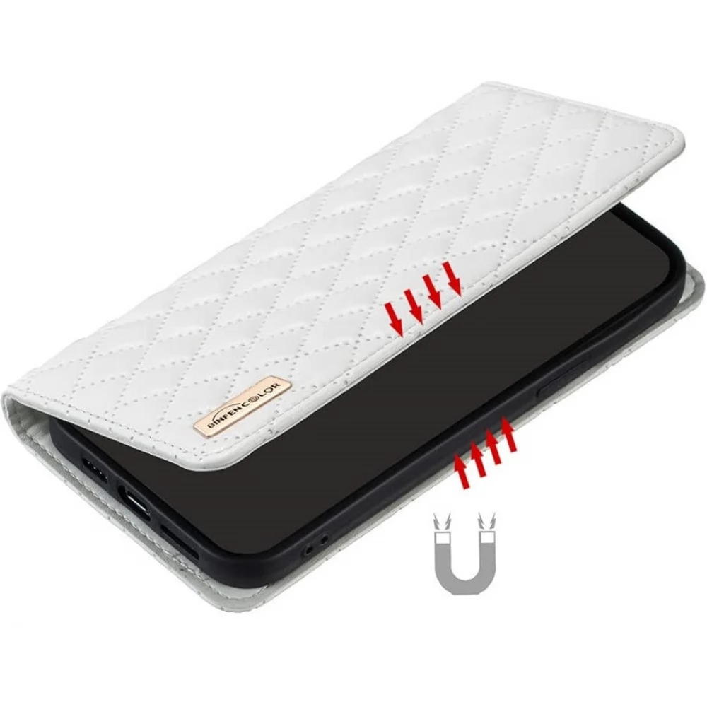 WOOZE Pillow oldalra nyíló tok stand kártyatartóval 3D rombusz minta Samsung Galaxy M13 4G SM-M135F fehér