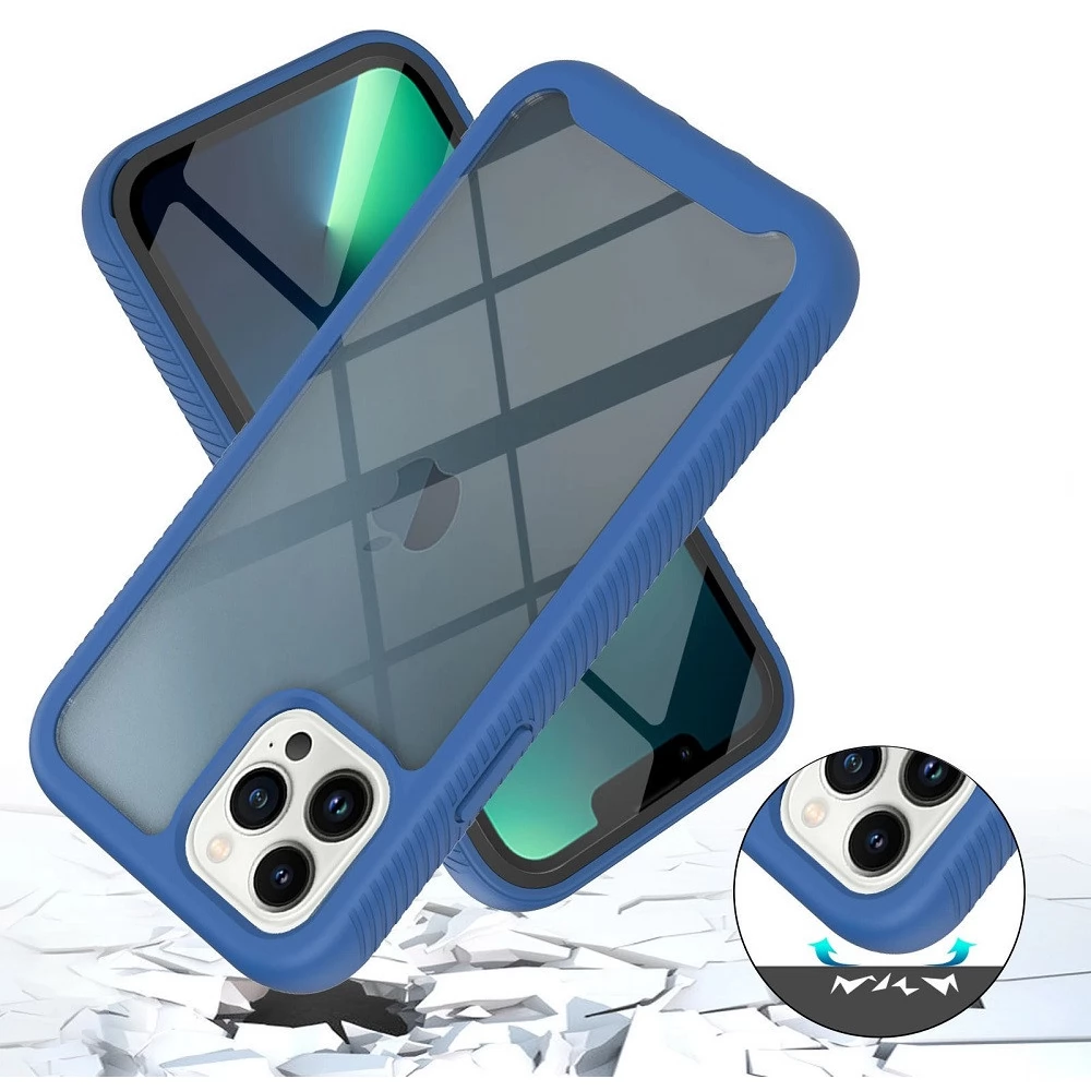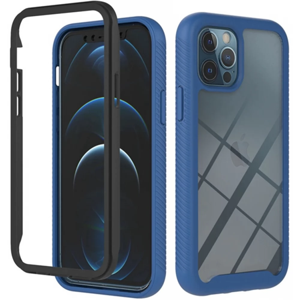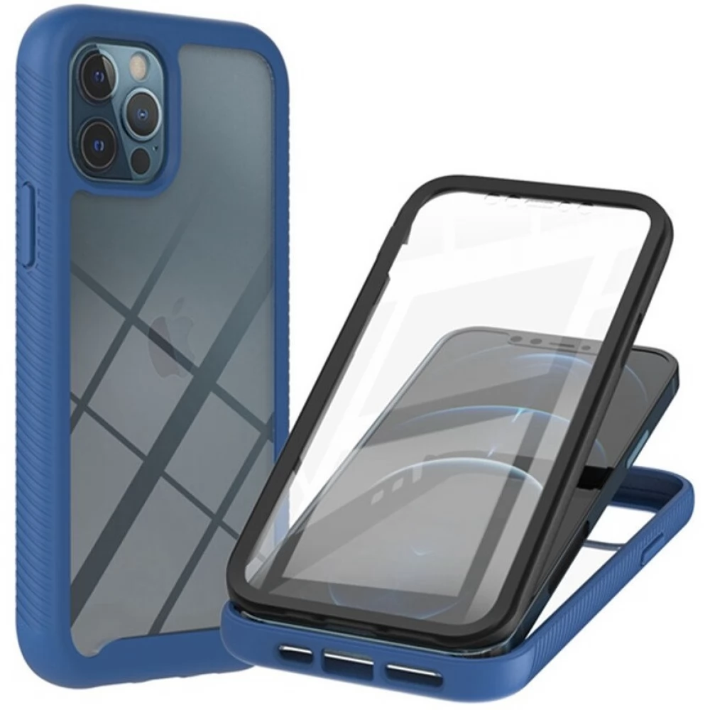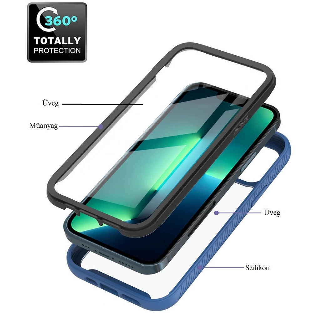 WOOZE Power Case Szilikon hátlap és műanyag előlapi tok elő- és hátlapi üveggel közepsen ütésálló iPhone 14 Pro Max fekete-kék