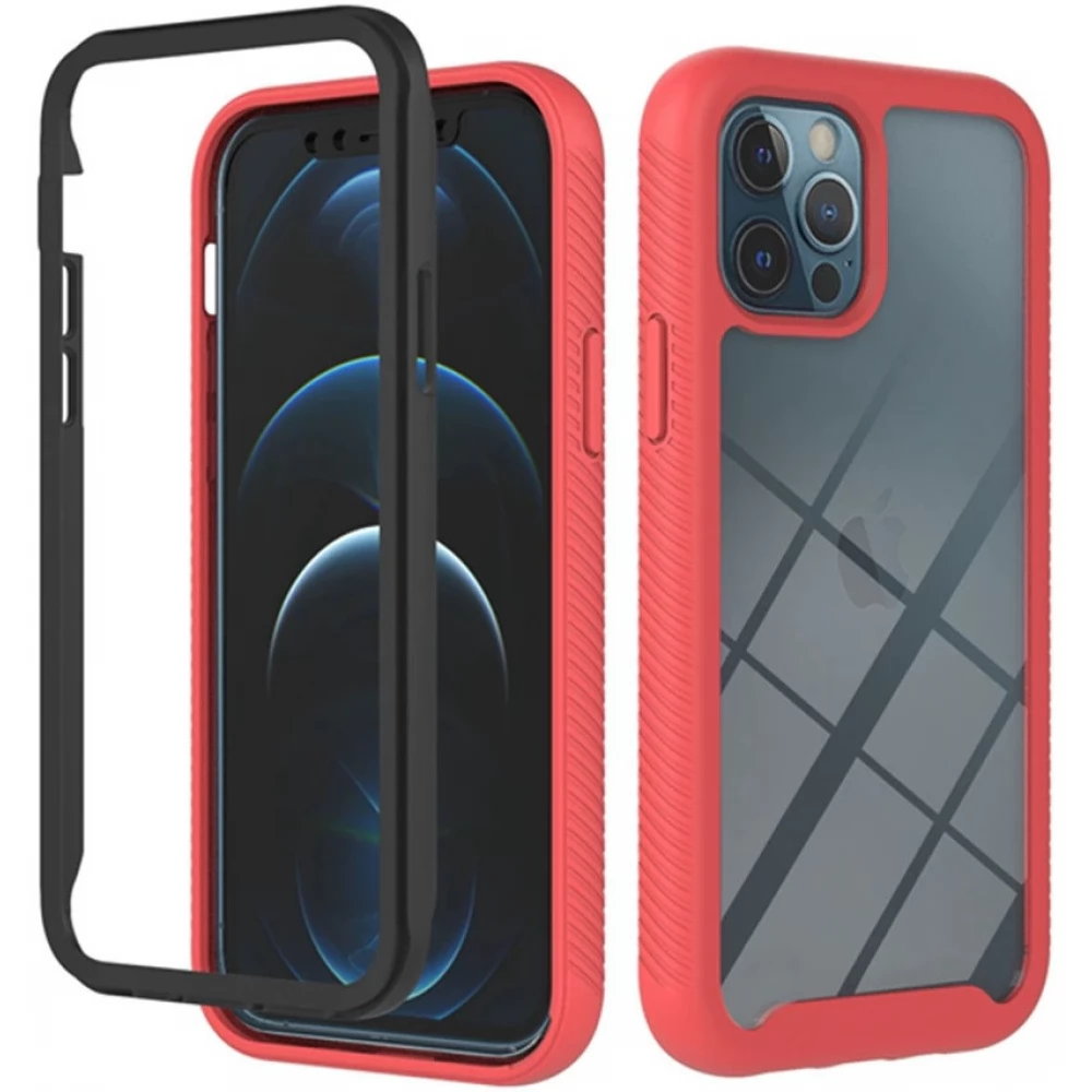 WOOZE Power Case Szilikon hátlap és műanyag előlapi tok elő- és hátlapi üveggel közepsen ütésálló iPhone 14 Pro Max fekete-piros