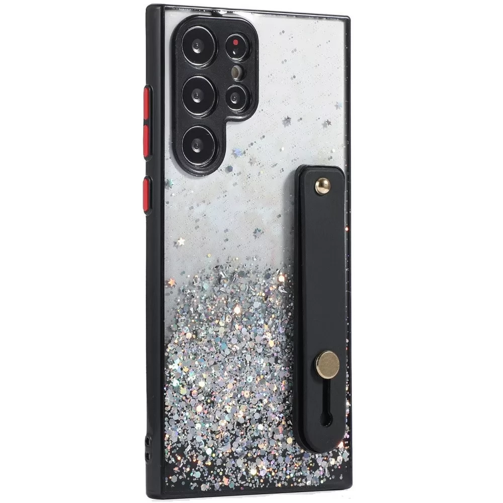WOOZE Strap Star Szilikon tok kézpánttal színátmenetes csillogó minta Samsung Galaxy A31 SM-A315F mintás/fekete