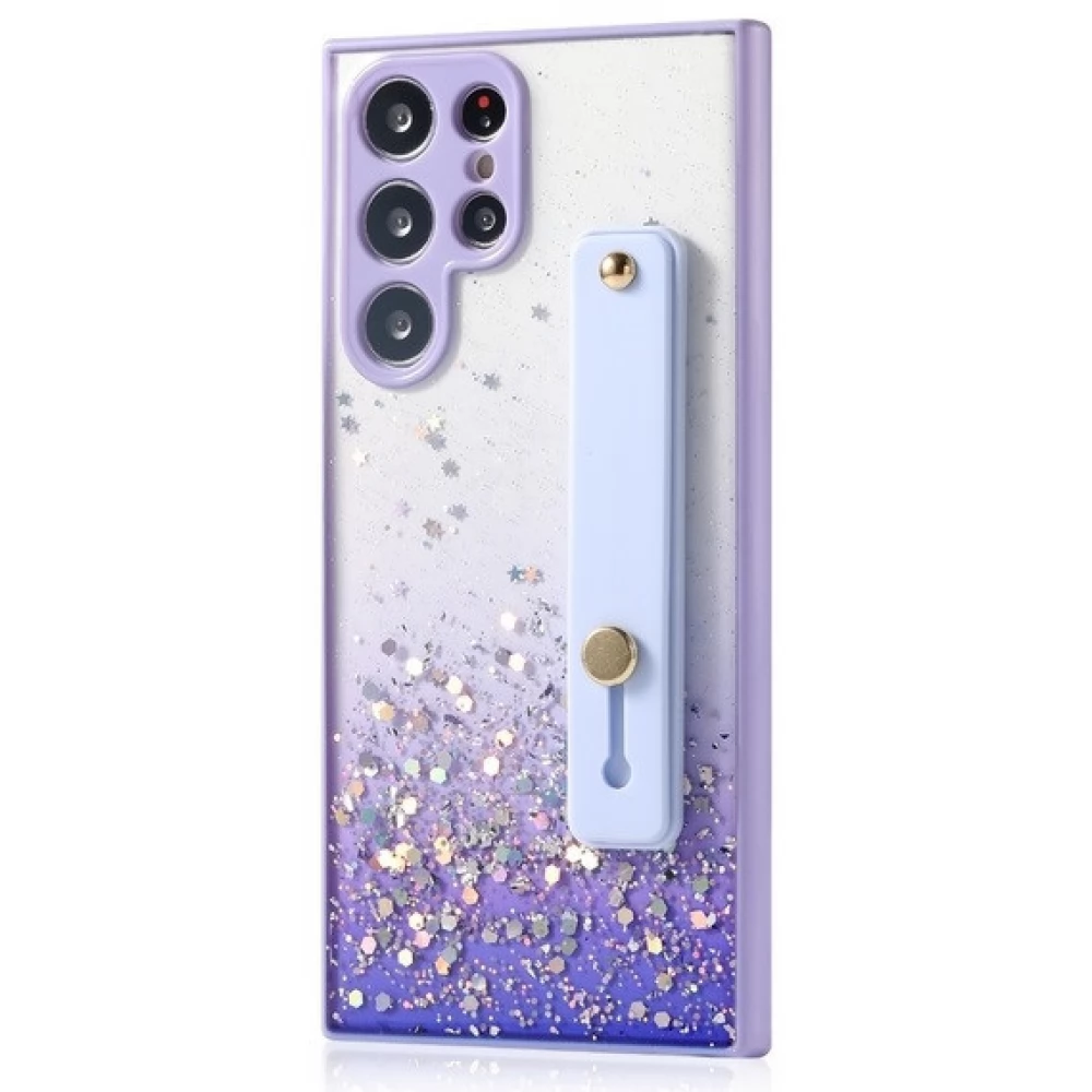 WOOZE Strap Star szilikon tok kézpánttal Xiaomi Poco X4 Pro 5G mintás/lila színátmenetes csillogós