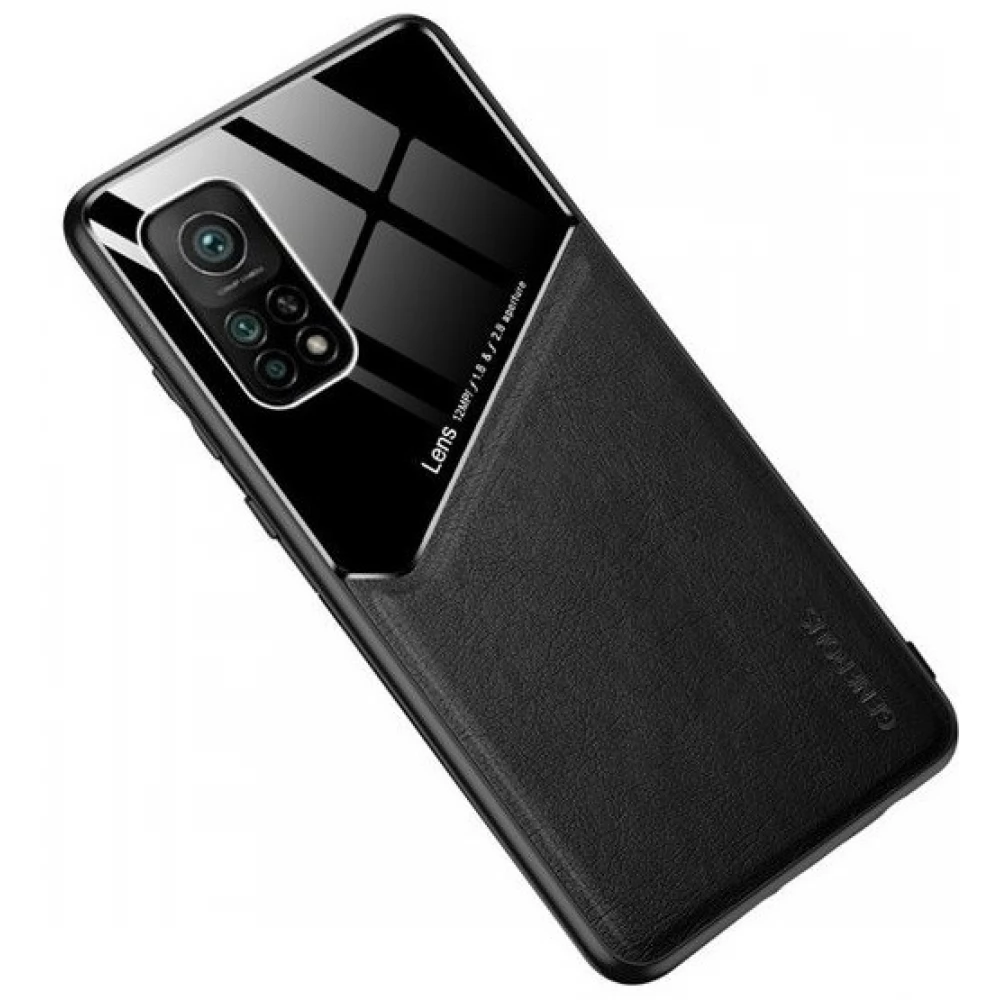 WOOZE Texture szilikon tok bőr és plexi hátlap közepesen ütésálló mágneses tartóval kompatibilis Xiaomi Poco X3 GT fekete