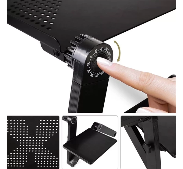 Univerzális laptoptartó, maximum 17" laptopokhoz, multifunkciós, több ponton állítható, fekete