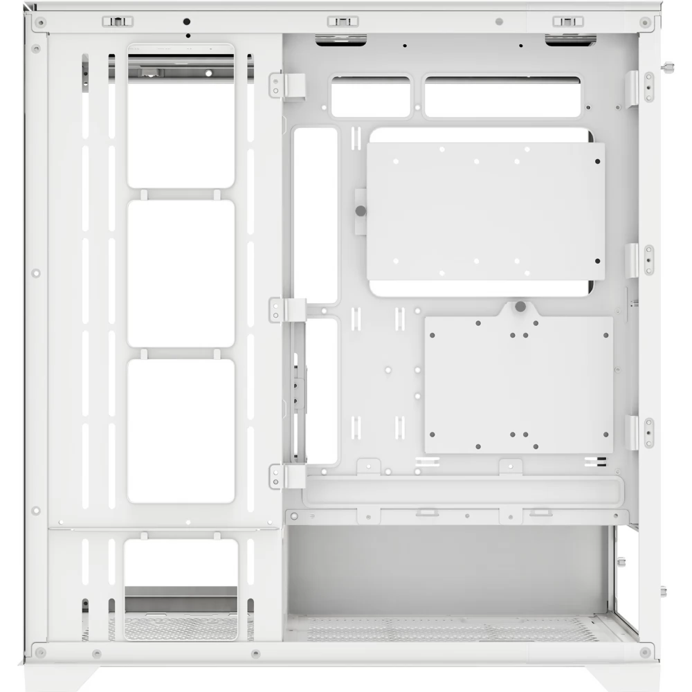 Az üveg előlap ellenére a ház hatékony légáramlást biztosít, így a rendszer nagy terhelés alatt is csendes és hűvös marad. A vízhűtő és a ház ventilátorai oldalra is felszerelhetők.